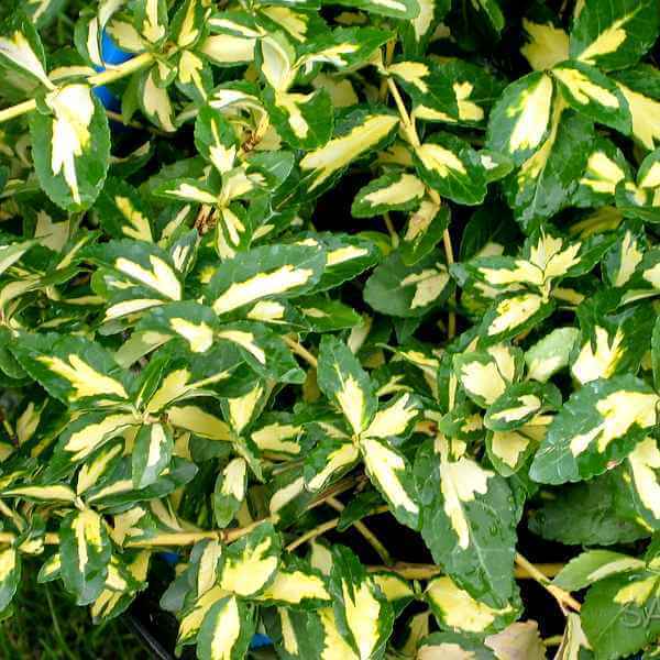 Листья у Sunspot необычные: яйцевидной формы 2 см в длину, темно-зеленые с золотистым овальным пятном вдоль осевой жилки. Мороз бересклет этого сорта переносит хорошо, так как укрывается снегом и весь холодный сезон находится под ним. Хорошо растет в полутени и на солнце. Высаживать нужно в нейтральные почвы.