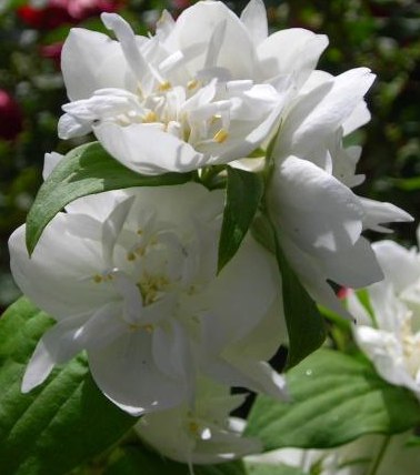 Чубушник Bouquet Blanche - очень красивый сорт, обладает сильним ароматом. Куст низкий, высотой до 1 м. Цветки снежно-белые, густомахровые, очень душистые, с широкоовальными нижними лепестками в несколько кругов, собраны в соцветия из 5 цветков.