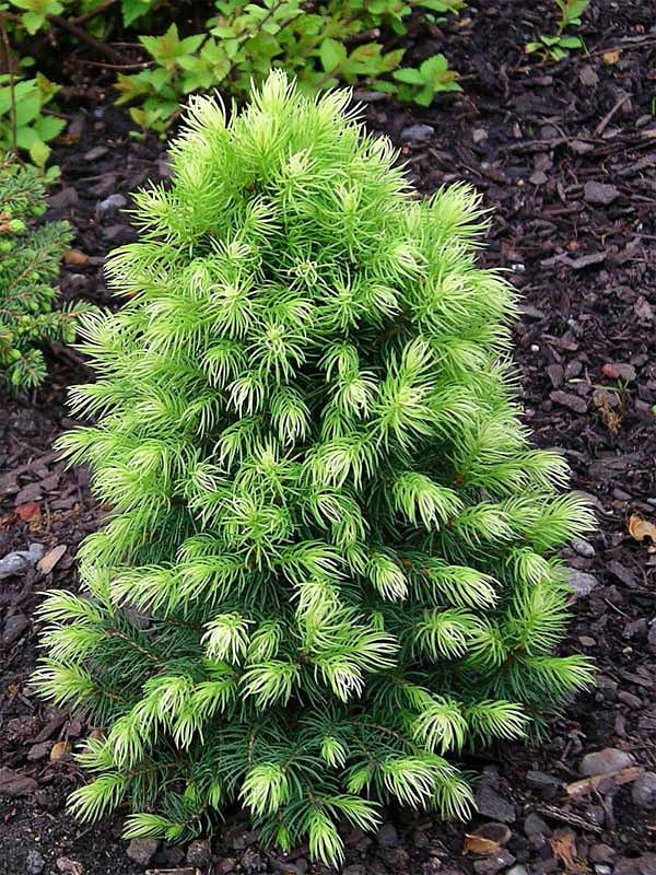 Взрослое растение (около 10 лет) обычно не превышает 0,8 м в высоту, поэтому его используют в альпинариях, небольших садах. Крона плотная, конусообразная. Крупномер сизая Daisy’s White декоративен весной, когда ветви покрываются бело-желтыми приростами, напоминающими новогодние игрушки. Побеги удлиняются и летом, но украшены они темно-зеленой мягкой хвоей. Сорт морозостойкий, любит полутень, потому что на солнце может получить ожоги. Саженцы приживаются на дренированных почвах.