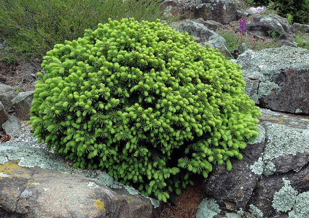 Взрослое растение в диаметре достигает 1 м, а в высоту не превышает 0,4 м. Небольшие, плотные побеги формируют округлую крону в виде подушки. Хвоя короткая, тонкая, зеленовато-голубого оттенка. Крупномер обыкновенная Echiniformis хорошо приживается как на солнечных участках, так и в полутени. Не терпит засухи, лучше растет на увлажненных почвах. Саженцы спокойно реагируют на обрезку, для придания аккуратной формы нужно время от времени удалять отдельные вертикальные побеги.