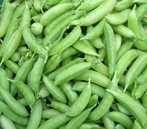 Горох Sugar Snap. Высота растения достигает 2 м и выше. Стручки выпуклые, короткие, светло-зеленые. Горошины округлые, средних размеров. Молодые плоды едят целиком сырыми, а зрелые готовят как фасоль. Сорт отличается великолепным сладким вкусом. Вкусовые качества долго сохраняются.