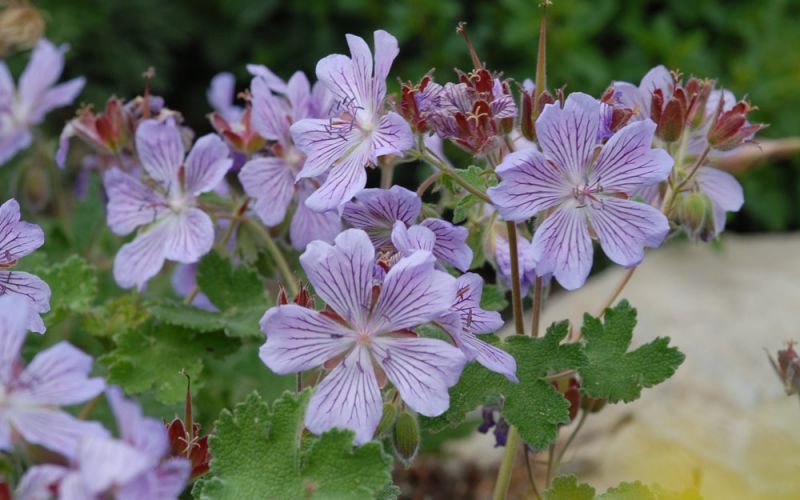 Герань гибридная Philippe Vapelle (Аистов клюв Geranium hybrid) хорошо растет на солнце или в легкой тени, на дренированных, умеренно влажных почвах. Сорт морозоустойчивый, светолюбивый, неприхотливый в уходе. Взрослые кустики высотой до 40 см и шириной до 50 см густо усыпано округлыми листами насыщенно-зеленого окраса. Цветы герани гибридной Philippe Vapelle сиреневые, с выразительными, более темными прожилками. Они появляются в июне-июле. Длится цветение до начала – середины августа. Данный сорт используют для каменистых горок, оформления переднего плана миксбордеров и клумб.