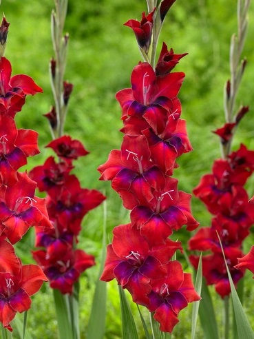 Гладиолус крупноцветковый Триколор – садовый многолетник, отрастающий из луковиц, которые не зимуют в открытом грунте. Эффектные горделивые цветы винно-красного оттенка украшены широким пурпурным пятном на нижних лепестках – эффектно и неожиданно.