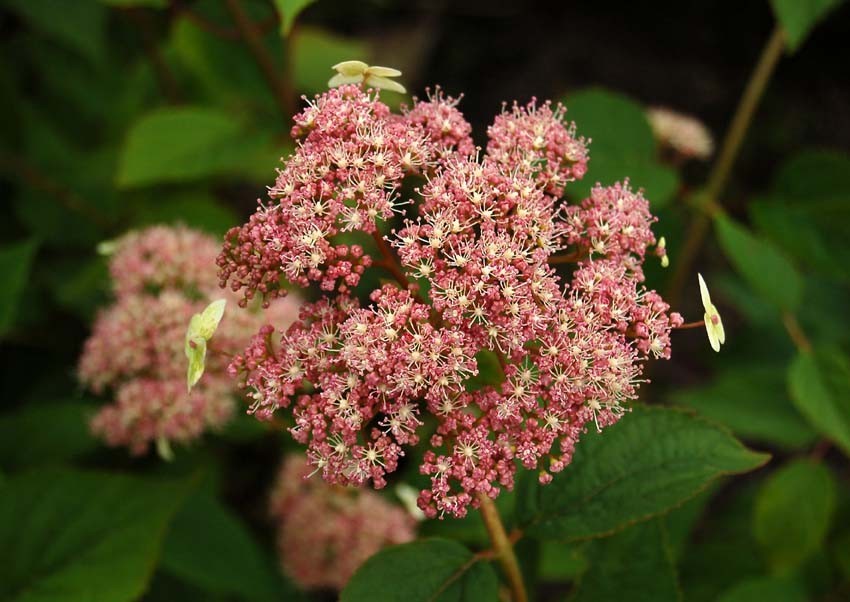 Саженцы гортензии древовидной Pink Pincushion имеют довольно скромные, для этого семейства, размеры. В высоту куст редко вырастает более 120 см, а в ширину около полутора метров. Главной особенностью и достоинством этой гортензии являются цветы. Ее полусферические пушистые соцветия, нежно-розового цвета, состоят, в основном, из плодоносных цветков, среди которых попадаются одиночные стерильные цветы, подобные мотылькам. Соцветия небольшие, всего 10см, издают приятный медовый аромат.