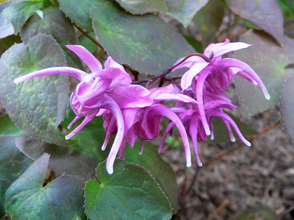 Горянка крупноцветковая Роуз - цветки изящные, крупные, диаметром 3,5 см, блестящие тёмно-розовые с длинными шпорами. Цветение в мае-июне. Листья сердцевидные остроконечные, тёмно-зелёные, весной бронзово-фиолетовые. Высота 20-25 см и ширина 30-45 см. Место полутенистое или тенистое. Почва дренированная. Зона 4 (до -29ºС).