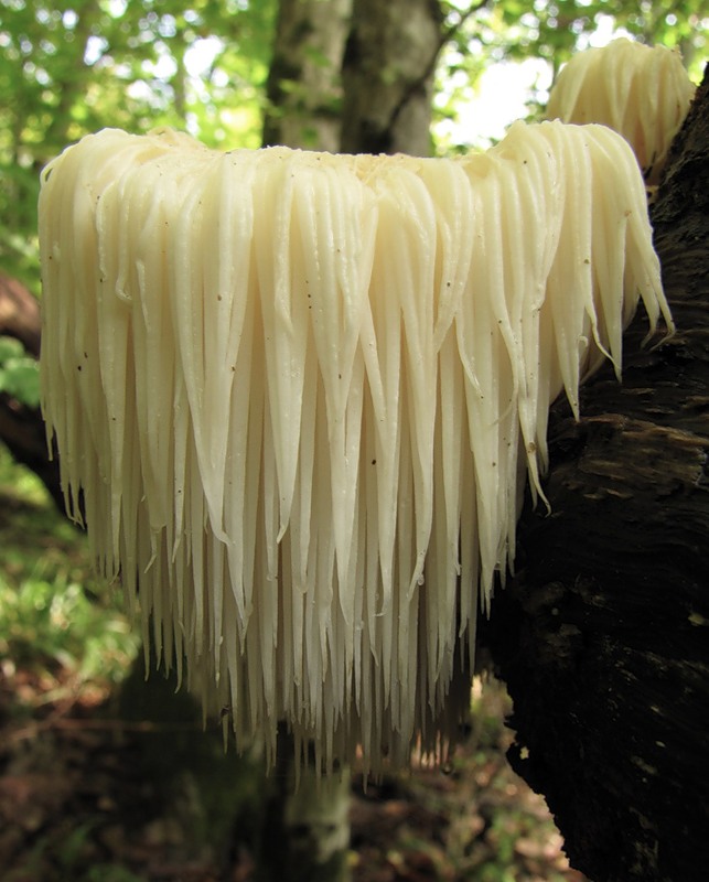 Гриб Львиная Грива (Ямабуши, Ежевик Гребенчатый) - плодовое тело размером до 20 см и весом до 1,5 кг, округлой или неправильной формы, от кремового до светло-бежевого цвета. Мякоть беловатая, мясистая. При высыхании желтеет. Гименофор шиповатый, имеет вид свисающих вниз тонких игл, что делает гриб похожим на ёжика. Регулярное употребление львиной гривы улучшает состояние нервной системы, стимулирует иммунитет. Плодоношение через 6-9 месяцев от начала засева поленьев мицелием. После сбора грибов, грибнице необходим отдых, для этого 2 недели бревно реже поливают. Урожайность высокая.