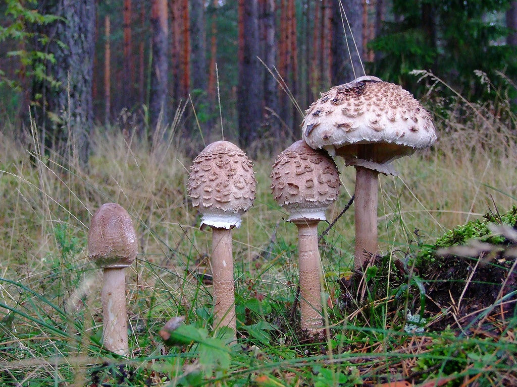 Гриб Зонтик Пестрый - достигает в высоту 40 и в диаметре 30 см. Мякоть и пластинки белые. Время сбора июнь – ноябрь. Съедобный только в молодом возрасте. Обычно каждый год появляется на том же месте. Так как этот гриб относится к сапрофитам, он любит богатые перегноем почвы и встречается чаще всего на пастбищах, полях или вдоль дорог. В лесу же гриб зонтик выбирает места, где много опавшей листвы, веток..