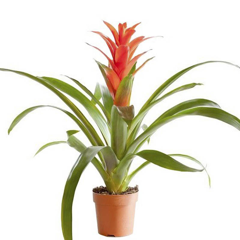 Экзотический цветок предпочитает большое количество света, но он обязательно должен быть рассеянным. Дело в том, что прямые лучи солнца негативно воздействуют на листья и цветы, что может привести к ожогам и гибели растения. Для многих комнатных цветов очень важно подобрать комфортные температурные условия. Гузмания привыкла к теплому климату и будет хорошо расти при температуре от 20 до 25 градусов тепла. Рекомендуем поддерживать выбранный режим круглогодично. Обратите внимание, что температура воздуха не должна опускаться ниже 13 и подниматься выше 27, иначе растение отреагирует крайне негативно. Гузмания привыкла к повышенной влажности воздуха, особенно это необходимо в комнатных условиях. Для ее поддержания нужно каждый день опрыскивать растение теплой водой. При выполнении этой процедуры избегайте попадания воды на прицветники, это может стать причиной сокращения продолжительности цветения. Также, будет полезно периодически проветривать помещение, но очень осторожно.Поливать гузманию следует каждые 5-7 дней, очень обильно. Воду необходимо лить прямо в листовую розетку. В особо жаркие летние дни частоту поливов можно увеличить. Для полива применяют теплую воду. В марте-сентябре каждый месяц вносят специальные удобрения для бромелиевых. В их состав не должны входить медь и бор. При разведении подкормки рекомендуем применять половину от указанной на упаковке дозы. Вносить удобрения можно вместе с поливом в листовую розетку или через опрыскивания.
