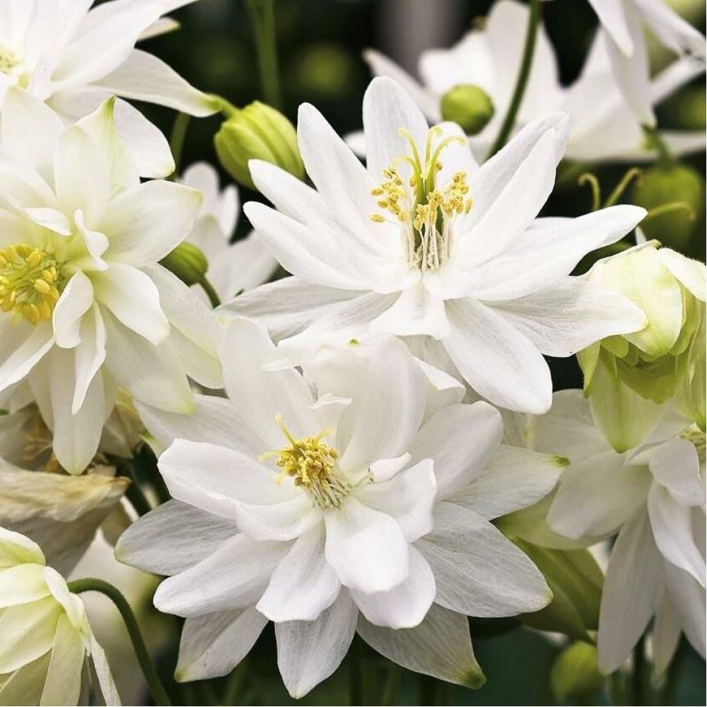 Аквилегия обыкновенная Вайт Барлоу цветёт белыми цветами, лепестки которых вытянуты в остроконечную форму. Они формируют сразу несколько рядов, поэтому визуально кажутся очень пышными. Высота аквилегии Барлоу всего 35 см, это низкорослых сорт. Лучше всего он будет сочетаться с розовыми гвоздиками и горечавками. Рекомендуем также посадить аквилегию в альпинарии! Её корневая система – стержневая, а потому даже в засушливые периоды она не засохнет, а выстоит безводные периоды в самом лучшем виде. На альпийских горках, где каждое растение на виду, это особенно ценно. Однако в небольших клумбах в тени сада Аквилегия обыкновенная Вайт Барлоу будет смотреться ничуть не хуже. Вы можете засеять им передний план большого цветника. Универсальный белый цвет прекрасно подходит для такой роли.