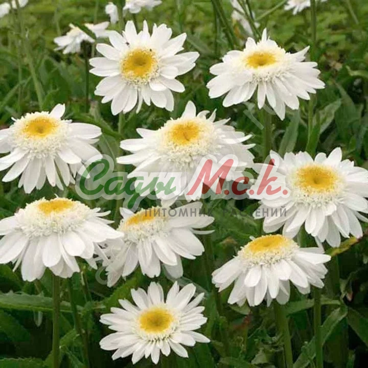 Нивяник наибольший Санни Сайд Ап (Chrysanthemum leucanthemum maximum) – хорошее приобретение для любого садовода. Это многолетнее декоративное растение, способно стать настоящим украшением любого участка. Chrysanthemum leucanthemum maximum представляет собой крупные соцветия из белых ромашек с желтой сердцевинкой. Нивяник наибольший Санни Сайд Ап имеет высоту до 100 см, диаметр цветка доходит до 12 см. Кроме того растение обладает отличным ароматом. Цветет нивяник с июня и до холодов. В уходе неприхотлив, почвы подходят любые, любит хорошо освещенные участки. Нивяник наибольший Санни Сайд Ап не требует частого полива. Размножать можно саженцами, черенками, делением куста.