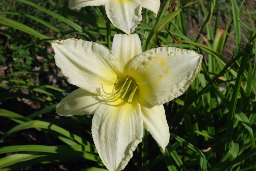 Саженцы лилейника Ice Carnival – корневищное невысокое многолетнее растение. Достигает высоты 45-55 см. Листья узкие, изогнутые, ярко-зеленого цвета. Цветки достигают 10 см в диаметре, махровые, с яркой солнечной серединой, гофрированными краями и общим белым цветом. Достигает высоты 45-55 см. Листья узкие, изогнутые, ярко-зеленого цвета. Цветки достигают 10 см в диаметре, махровые, с яркой солнечной серединой, гофрированными краями и общим белым цветом. Цветки достигают 10 см в диаметре, махровые, с яркой солнечной серединой, гофрированными краями и общим белым цветом. Хорошо растет в полутени, но обильнее цветет на солнечной территории. Любит хорошо увлажненные плодородные почвы. Огромное преимущество данного сорта есть то, что он минимально подвержен влиянию вредителей и болезней. Не теряет свою декоративность, даже будучи 10-12 лет на одном месте.