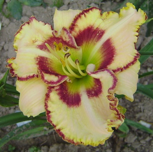 Саженцы лилейника Lady Betty Fretz – считаются одним из наиболее красивых лилейников селекции нового поколения. Цветок имеет цвет слоновой кости, ярко вишневую кайму и такой же расцветки глаз. За одной каймой идет еще одна, более широкая, гофрированная и золотистая. Красоту цветка усиливает зеленое горло. Цветок в диаметре достигает 15 см, имеет тетраплоидную форму. Цветет с июля по август. Может повторно зацвести осенью. В высоту взрослое растение достигает 65-70 см. Зимует без укрытия. Сажать крупномеры Lаdу Bеttу Frеtz стоит на солнечной стороне, но они так же отлично переносят полутень и даже тень. Поливать растение нужно обильно, но не часто.