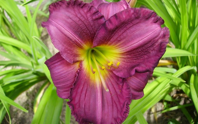 Саженцы лилейника Purple de Oro– это молодые гибриды, выведенные в 2000 году. Сорт низкорослый, примерно 48 - 51 см, но при этом образует 7 - 8 цветоносов с обильными соцветиями из бутонов. Цветок имеет розовато - пурпурный цвет и очень широкое горло золотистого цвета. Прожилки на внутренних лепестках ярко выражены и на два тона темнее основного цвета цветка, так же по центру лепестка четко видна белесая продольная линия. Края слабо - волнистые. В диаметре цветок не очень крупный, всего 7 - 8 см. Цветет крупномер рurрlе dе оrо на протяжении июля - августа. Устойчив к перепадам климата, на зиму отмирает, а весной восстанавливает рост.
