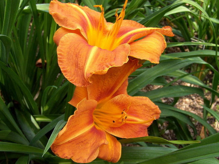 Лилейник Tusсаwillа Tigеrs – один из самых мощных и сильных сортов многолетников семейства Лилейниковые. Это гибридное, необычайно красочное растение с цветами, напоминающими лилии. В период роста может достигать 70-сантиметровой высоты, образуя сочные ярко-зеленые листья мечевидной форма. В третьей декаде июня – начале июля появляются длинные цветоносы с большим количеством бутонов. Очень крупные огненно-оранжевые цветы с большим желтым горлом, в диаметре достигающие 18 см, способны внести в сад яркие краски и ощущение праздника. Лепестки имеют треугольную форму с более светлыми, желтыми стрелками по центру. В конце лета цветение повторяется и бывает таким же обильным. Этот нарядный многолетник нарядно смотрится и в групповых посадках, но может эффектно солировать и на газоне.