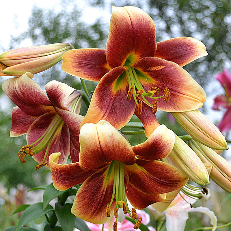 Лилия Debby относится к гибридным лилиям. Цветки винно-красные, с лососевой каймой. Высота растения - 140 см. Время цветения - июль-август. Лучше всего этот сорт растет на солнце. Отличается высокой устойчивостью к заболеваниям и морозостойкостью.