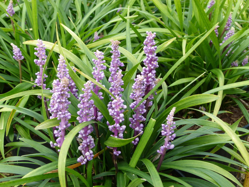 Лириопе мускари Ингверсен - клубневое многолетнее растение, образующее плотное скопление узких изогнутых темно-зеленых полосатых листьев. Зацветая в конце лета, над листьями появляются вертикальные шипы густо расположенных мелких цветков, похожих на лаванду.