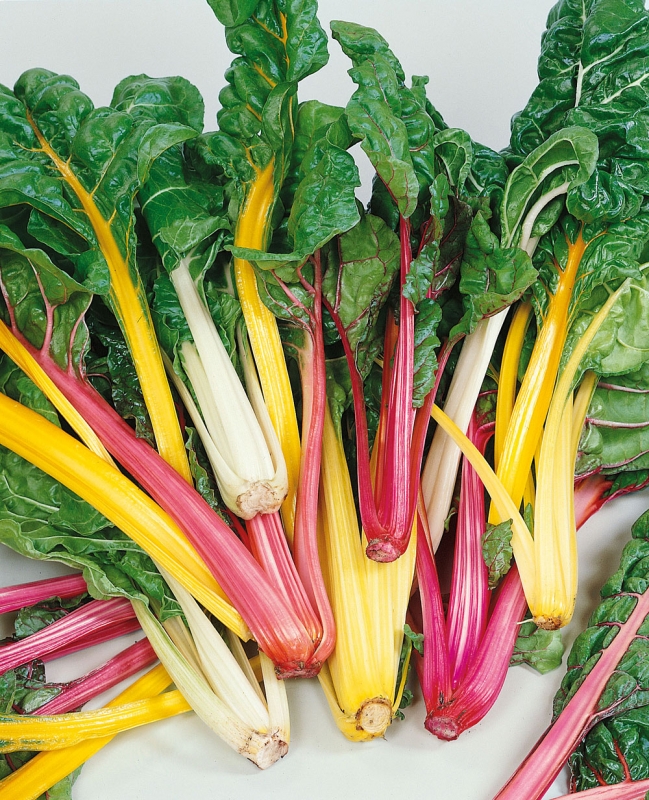 Мангольд Bright Lights - листовая свекла. Черешки и прожилки разноцветные - желтые, белые, красные. Листья крупные, сочные, темно-зеленые, похожие на листья шпината. Стебли и листья используют в кулинарии для приготовления различных блюд.