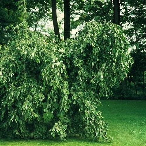 Привитое дерево с изящной, плакучей кроной. Растет умеренно быстро, по 30-60 см. в год. Ствол прямой, вертикальный, ветви ниспадающие вниз. Листья темно-зеленые, по форме напоминают листья ольхи серой.