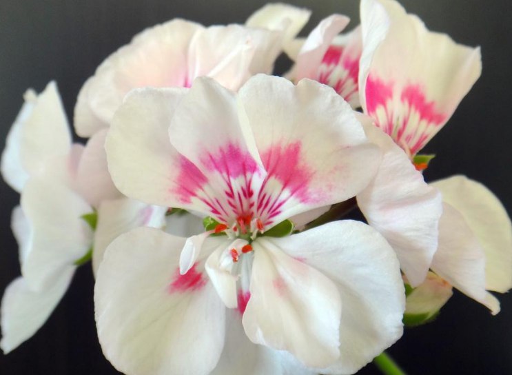 Пеларгония Bravo Pastel - маленький компактный кустарник. Цветки простые немахровые, крупные, белого окраса со светло-розовым оттенком. У основания каждого лепестка есть насыщенно-розовые пятна, по форме напоминающие цветки на цветоножках.
