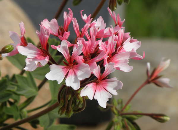 Пеларгония Rosa Della Sera - удивительный декоративный сорт. Отличается своими цветками необычной формы. 2 верхние лепестка более узкие, а 3 нижние - широкие. Окрас лепестков белый по краям и розовый у основания. Листья зеленые, лопастные. Побеги длинные, бордовые.