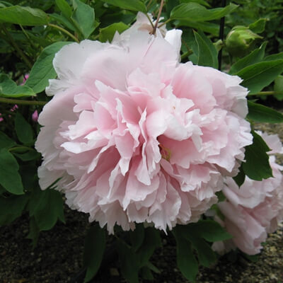 Древовидный пион Zhao Fen с нежно-розовым цветом лепестков станет украшением вашей коллекции пионов.Корончатая форма. Размер цветка достигает 18см на 8см, цвет розовый, края лепестков волнистые. Кустарник с крепким длинным стеблем, цветки наклонены в сторону. Цветение в середине сезона. Корневища используются в медицине.