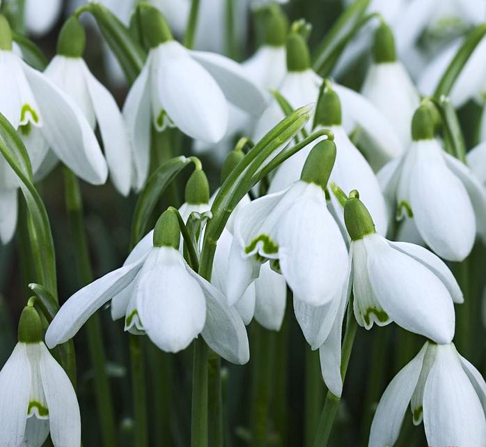 Один из самых титулованных сортов. Ранний, с крупными цветками на прочных цветоносах. Изящные колокольчики из белоснежного фарфора с контрастными зелёными пятнами распускаются, когда в саду ещё полно снега. Они прекрасно себя чувствуют на богатой лесной почве в тени лиственных деревьев, под кустами, или вдоль тропинок. Долгожданные и не требовательные, самые первые!
