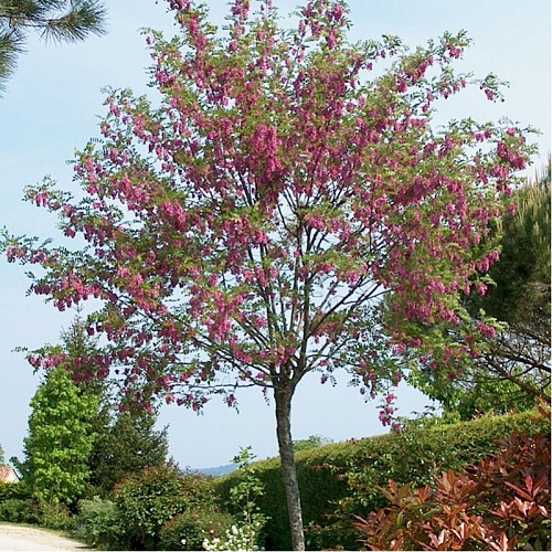 Листопадное дерево, до 12 м в высоту и 5-6 м в ширину. Крона овальной формы, со свисающими молодыми побегами. Особенно декоративна в период цветения, тогда дерево обильно усыпано розовыми цветами с тонким нежным ароматом, который заполняет всё пространство вокруг. Цветы длинной 2-3 см, собраны в свисающие кисти длиной 15 см, Цветёт в июне.