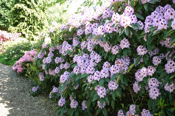Рододендрон Blue Peter - вечнозелёный кустарник шаровидной формы. Листья глянцевые, темно-зеленые. Цветки светло-фиолетовые с темным горлом. Край лепестков волнистый. Предпочитает кислые, влажные, хорошо дренированные почвы и защищенное от ветров местоположение. Морозостойкий сорт. Высота: 1-1,5 м. Период цветения: май - июнь.