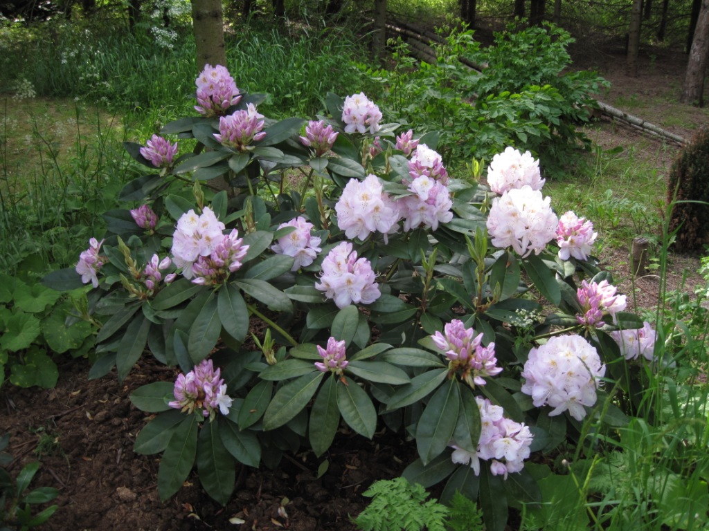 Рододендрон Gomer Waterer - кустарник до 3 м, но в условиях Подмосковья значительно ниже. Бутоны фиолетовые, при распускании бело-сиреневые. Время цветения май - июнь. Листья темно-зеленые, эллиптические, кожистые, блестящие, длиной 10 - 15 см, 2 - 4 см шириной. Быстрорастущий, 10 - 15 см в год. Почва кислая, богатая перегноем, хорошо дренированная почва. При посадке предпочтительно использовать специализированный грунт. Хорошо растет в полутени.