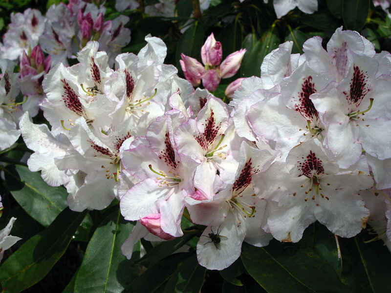 Рододендрон Gudrun - сорт вечнозелёных рододендронов гибридного происхождения. В возрасте 10—15 лет кусты имеют высоту и ширину 120(150) ? 120(150) см. Максимальная высота около 2 метров. Листья вечнозелёные. Соцветия имеют высоту около 120 мм, ширину около 110 мм. Зимой бутоны красновато-коричневые. Цветки около 7 см в диаметре, белые, по краям видны розоватые оттенки, на верхних лепестках имеется тёмное сиреневое пятнышко. Аромат отсутствует.