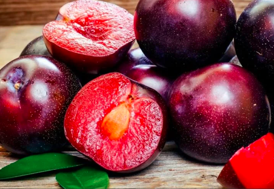 Гибрид абрикоса, сливы и персика. Дерево с раскидистой кроной, быстрорастущее. Крупные плоды, листья и шипы сильно напоминают обычную сливу. Форма и размер плодов - абрикос. Окраска плода фиолетовая. По вкусу фрукт напоминает сливу и абрикос. Мякоть легко отделяется от округлой косточки и напоминает сливу и абрикос. На косточке можно обнаружить классический «персиковый» узор. Диаметр плодов - 6-7 см. Выраженного аромата у плодов нет. Вкус плода изменяется по мере созревания: у полностью созревшего плода сильнее выражен вкус абрикоса, а у недоспевшего - вкус сливы. Плоды не склонны к осыпанию. Урожай созревает в конце августа – начале сентября. Не требует укрытия на зиму. Российские садоводы-любители, уже поселившие в своих садах шарафугу, подтверждают, что эта культура способна выдерживать зимние температуры до -30'С, а кратковременные – даже до -35'С. Не смотря на имеющееся незначительное подмерзание побегов при столь низких температурах, шарафуга весной быстро восстанавливается, цветет и нормально плодоносит.