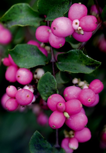 Снежноягодник Amethyst - декоративный, прямостоячий, раскидистый кустарник, высотой около 1,5 м, со свисающими побегами и темно-зелёной листвой, сохраняющейся на кустах до ноября. Цветки бледнорозовые, невзрачные, появляются в конце июля – начале августа. Плоды крупные, шаровидно-овальные, интенсивно-перламутрово-лилово-розовые, собранные в многочисленные гроздья, сохраняются до морозов. Сорт неприхотливый и выносливый.