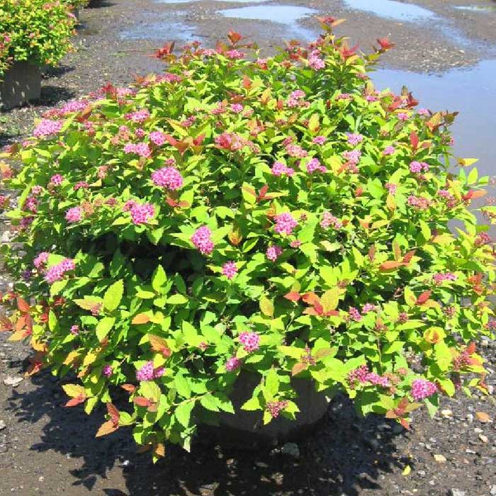 Саженец спиреи японской Little Princess относят к карликовому сорту растений. Высота куста может достигать 80 см, а шар кроны – 1.2 м в диаметре. Цветет очень красиво, выбрасывая соцветия на самые края ветвей.