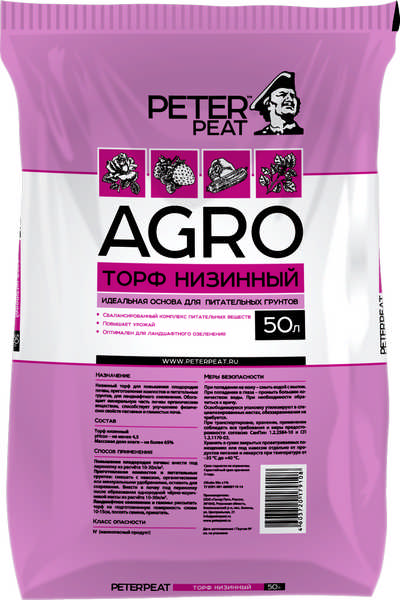 Торф низинный (линия АГРО) 50 л - низинный торф для повышения плодородия почвы, приготовления компостов и питательных грунтов, для ландшафтного озеленения. Обогащает минеральную часть почвы органическим веществом, способствует улучшению физических свойств песчаных и глинистых почв.