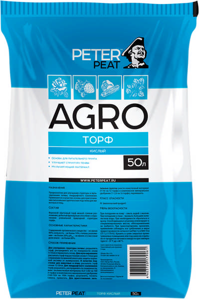 Торф верховой кислый (фракция 0-20, Линия АГРО) 50 л - для улучшение структуры и мульчирования почвы, ландшафтного озеленения, в качестве подстилки для животных и птиц. Экологически чистый и однородный состав. Применяется в качестве основы для приготовления питательных грунтов.