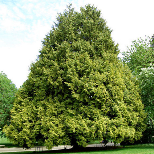 Туя складчатая Zebrina - пестрый сорт туи складчатой. Хвоя данного сорта зеленая с желтыми полосками, за что и получил свое название. Дерево широкой конической формы, высотой до 10-12 м. В 10-летнем возрасте высота около 2,5 м, при диаметре кроны 1,5 м. Годовой прирост около 20 см. В начале крона имеет более рыхлый вид, с возрастом уплотняется.