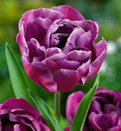 Тюльпан Blue Diamond - относится к группе весенних луковичных цветов. Высота тюльпана – 40-45 см, диаметр цветка – 8-10 см. Цветет в мае. Цветок махровый. Окраска темно-лиловая со светлым оттенком по краям лепестков. Цветки этой формы напоминают густомахровые пионы. Обладает сорт средней скоростью роста, подходит как для озеленения и украшения клумб, так и для букетов, отлично растет на хорошо освещенном месте и в полутени.