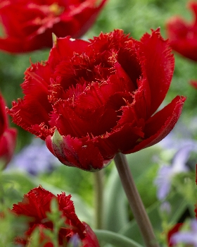 Тюльпан Fiery Dream - сорт позднего срока цветения. Время цветения - апрель-май. Высота стебля 45 см. Цветок насыщенно-красный, однотонный, сильномахровый, бахромчастый. Сорт подходит на срезку. Садить в грунт растение лучше в сентябре-октябре.