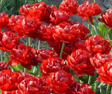 Тюльпан Salcido - цветок пионовидной формы, махровый, позднего цветения. Окрас цветка насыщенно-красный, блестящий, однотонный. Высота стебля взрослого растения составляет в среднем 45 см. Сорт подходит для срезки.